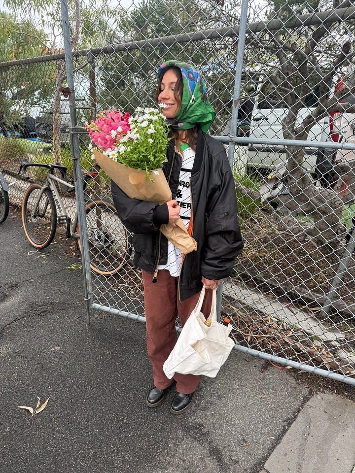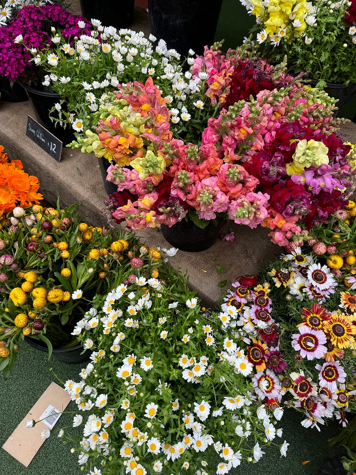 The market itself is also just so cute stocking lots of fresh flowers, yummy things and lots of people watching.I ran into a bunch of pals and it has a lovely community vibe. There's a flower stand at the front that has the most amazing cottage garden flowers for $12 a bunch – so I got three bunches to fill the house.
