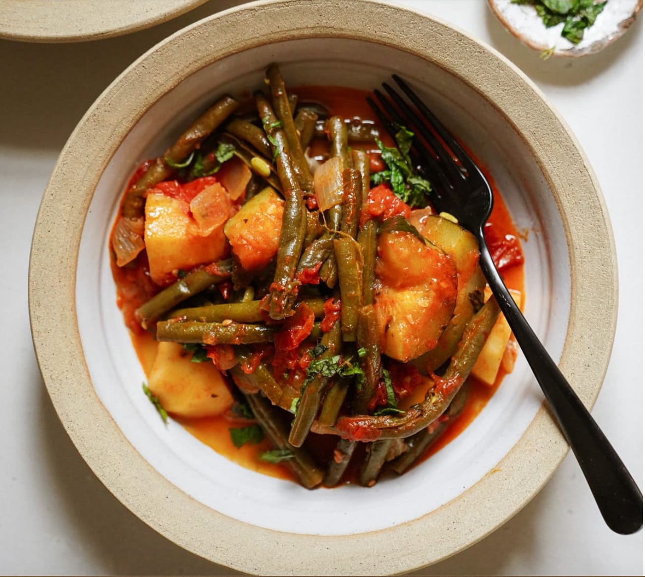 I am addicted to making Fasolakia, which is a greek bean stew. It’s so easy to whip up and always makes me feel so good inside and out when I eat it!
